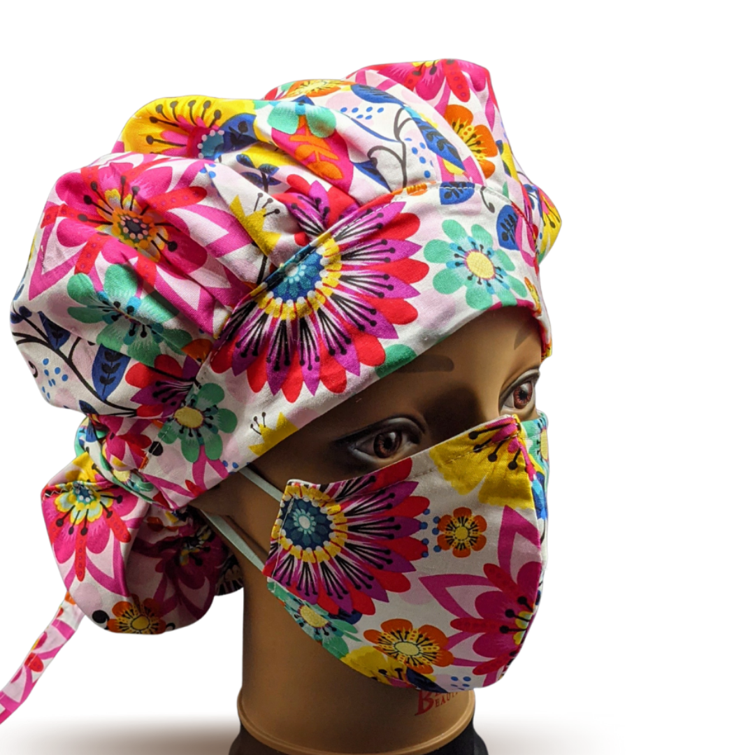 • Adjustable surgical cap with two tie-back strings.