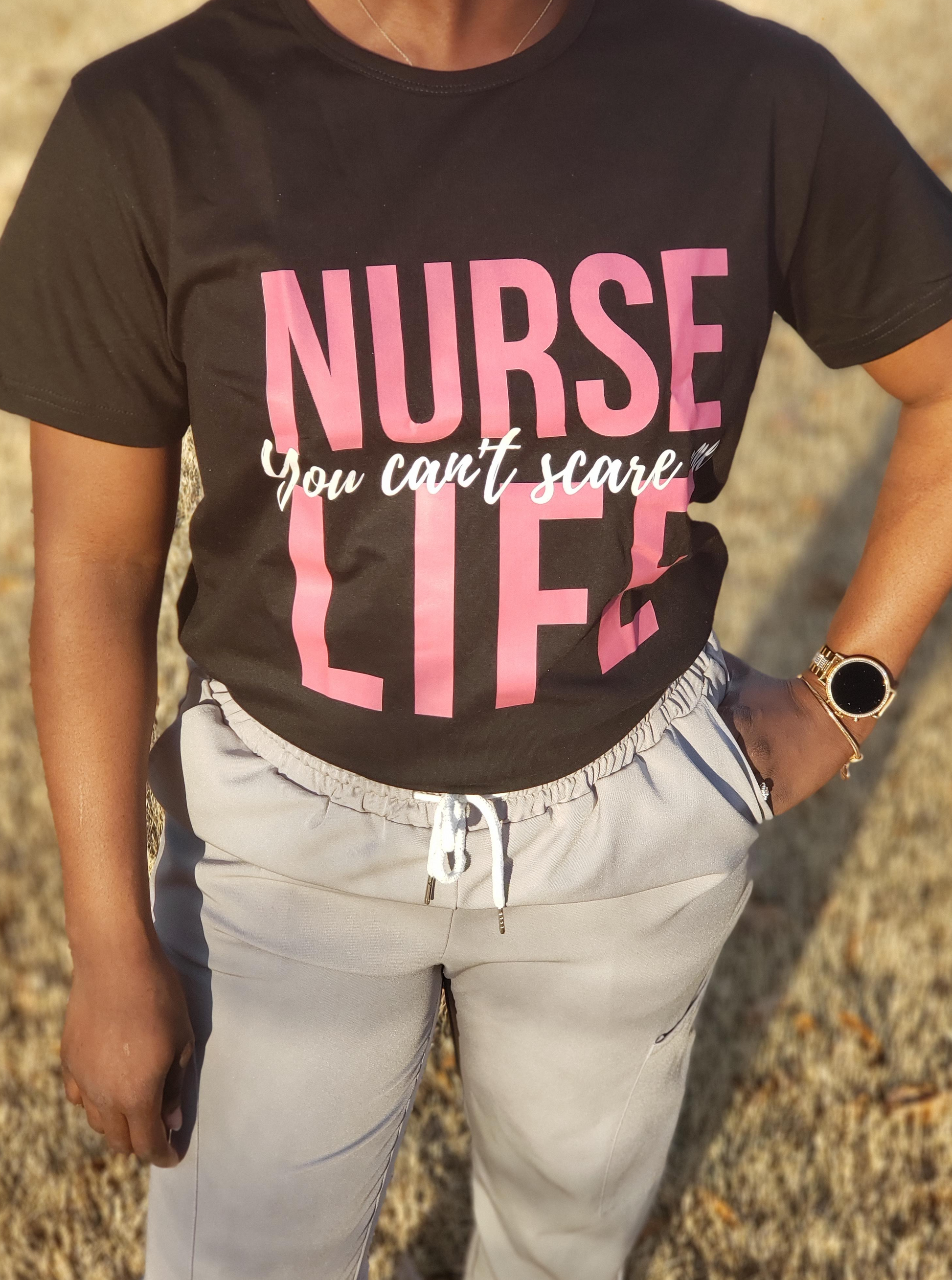 Designed to always fit and feel like a new shirt, the Nurse Life T-shirt is an exclusive tribute to all those that don't have a chance to be scared.
