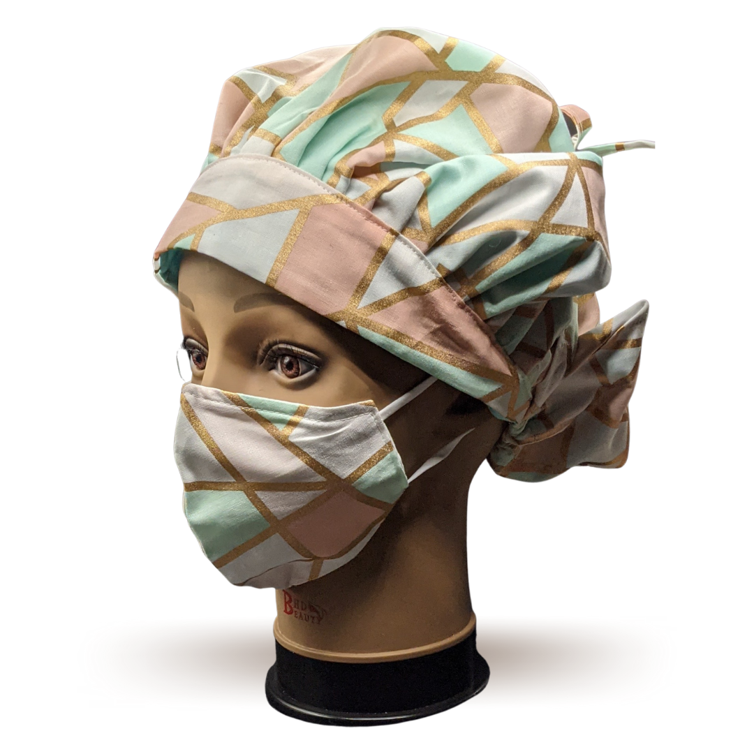 Who doesn't like mosaics? This soft-colored, satin-lined bouffant is a great mixture of soft colors and protection. Made from 100% cotton and handcrafted in the US.